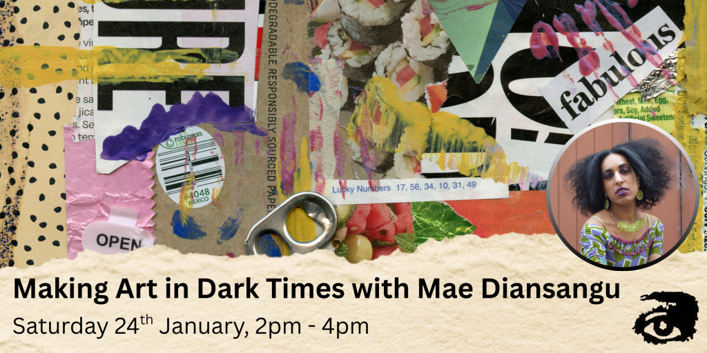 Create found poetry and collage art in ‘Recover, recycle, reimagine: making art in dark times’ – a workshop led by poet Mae Diansangu.