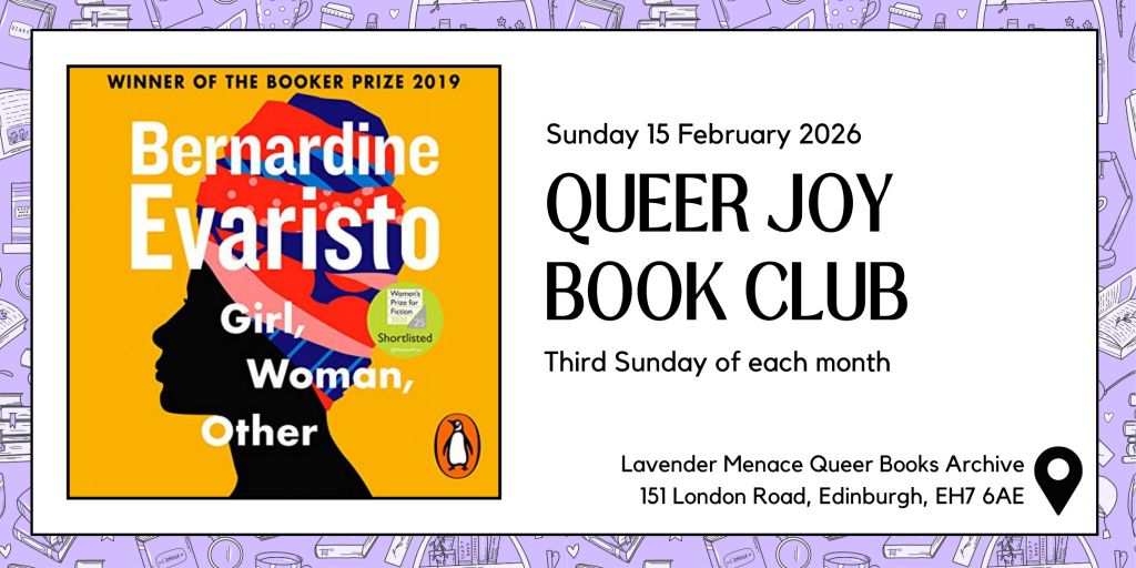 The event is located at the Lavender Menace Queer Books Archive in Edinburgh Palette. There is information on how to get to us on public transport and by car, along with access information, on our location & accessibility page.